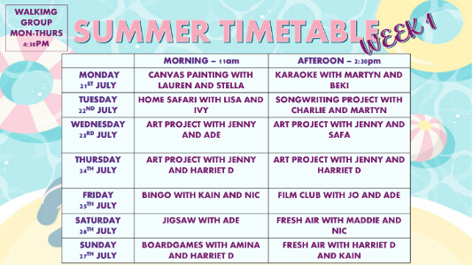 We know it is important to have things to do over the school holidays, so we plan a holiday timetable with activities to do both on and off the ward.  These include animal therapy, art projects, music activities, trips to the museum, quizzes and games.